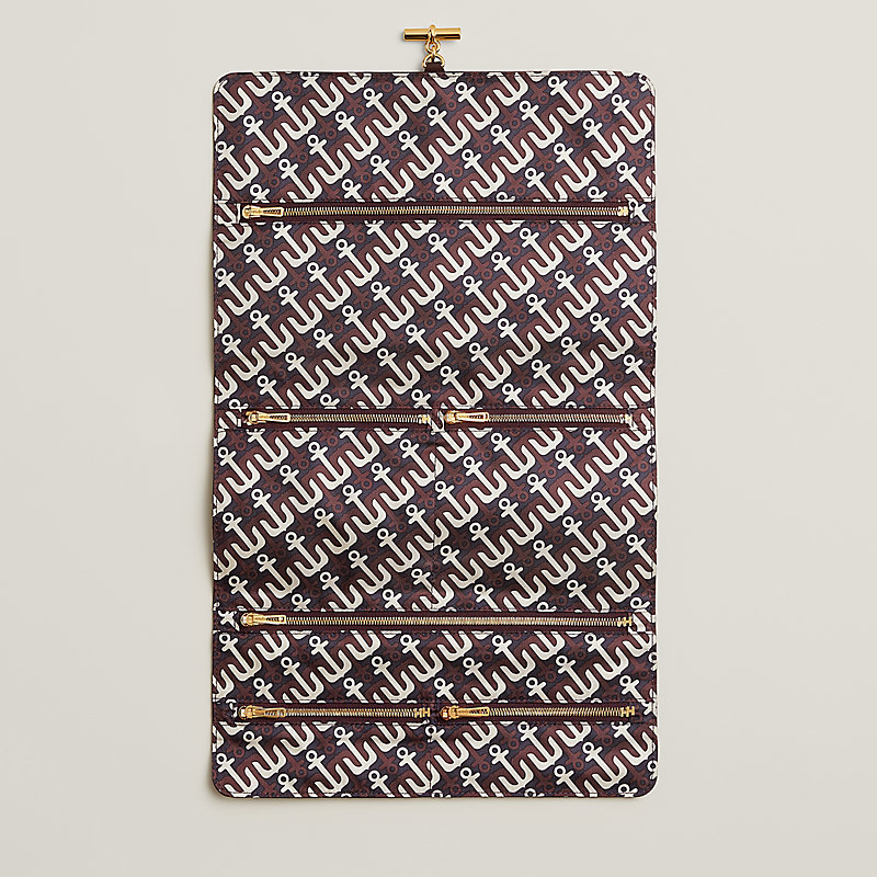 Pouch in "Ancre" printed technical silk and Swift calfskin