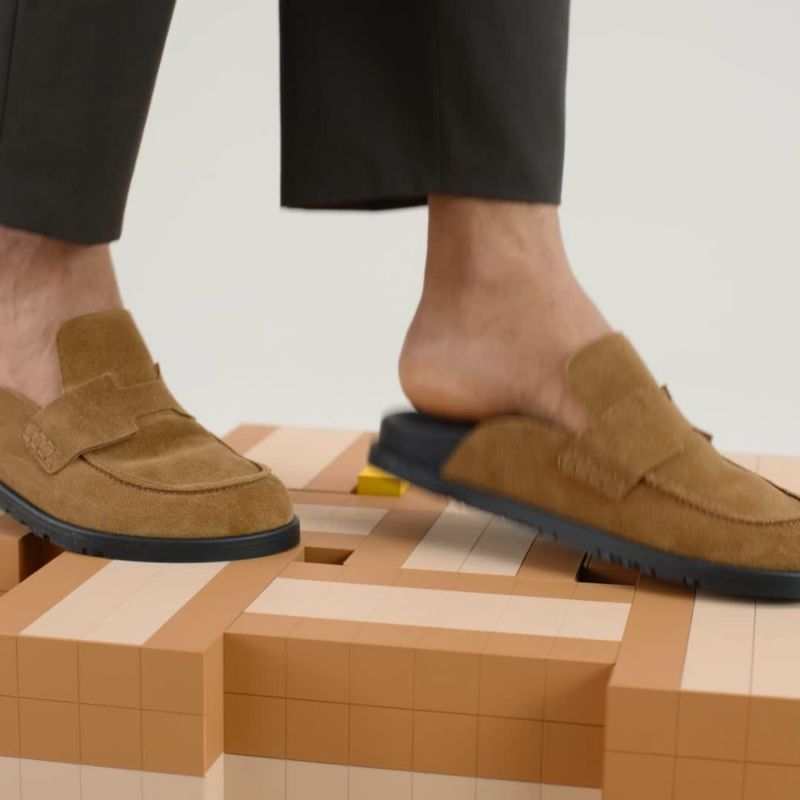 Mule in suede calfskin with iconic "H" cut-out detail.