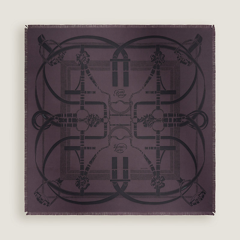 Henri d'Origny's Grand Manège design is printed on this fringed scarf, reinterpreted in a sleek graphic version.