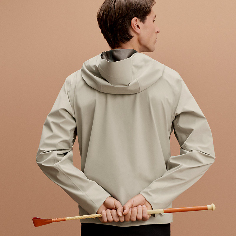 - The large adjustable hood allows to seamlessly fit a riding helmet