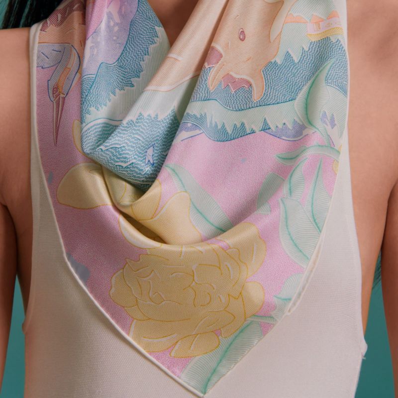 Immerse yourself in captivating silk, where a sense of lightness, boldness and boundless playfulness intertwine. The 70 scarf is modern and effortless, with its versatile, creative and playful ways of wearing.