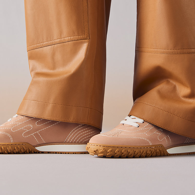 Sneaker in stitched suede goatskin with contrasting design and signature "H" detail.