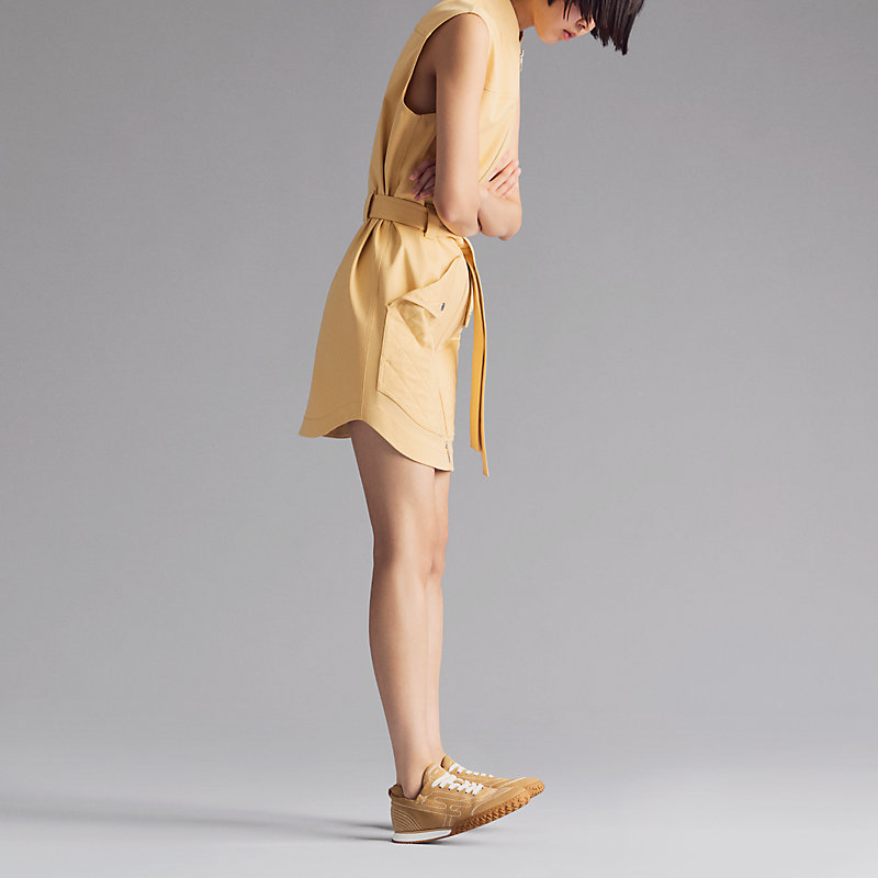 Sneaker in stitched suede goatskin with contrasting design and signature "H" detail.