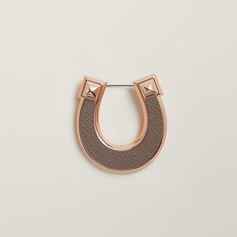Brooch in Epsom calfskin and metal.