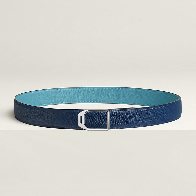Jockey belt buckle & Reversible leather strap 32 mm, Jockey silver