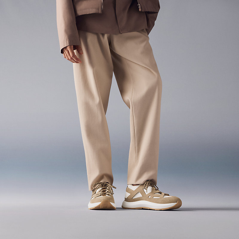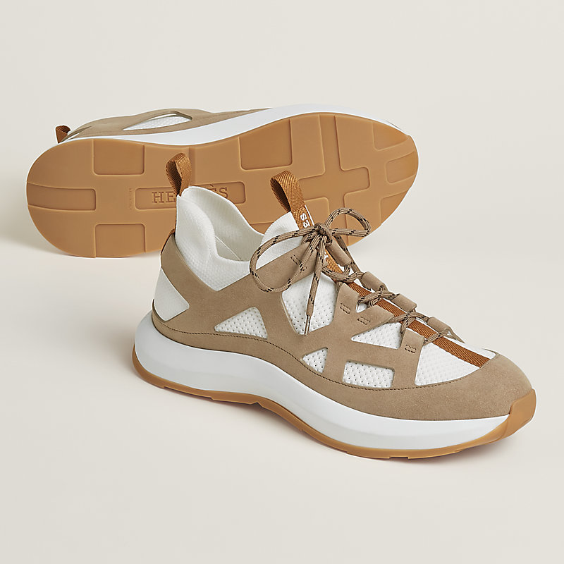 Sneaker in knit and suede goatskin with graphic cut-out detail.