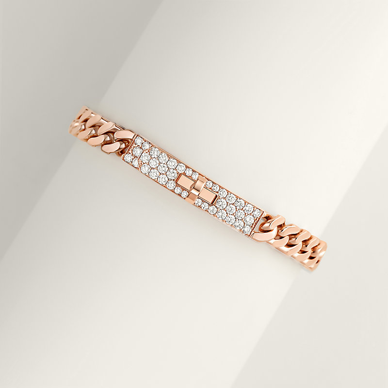 Bracelet in rose gold set with diamonds and Kelly clasp