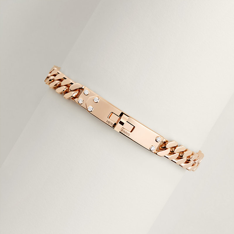 Bracelet in rose gold set with diamonds and Kelly clasp