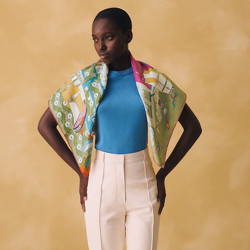 This iconic Hermès piece embodies the essence of powerful beauty and charismatic femininity. The 90 scarf symbolizes the boundless freedom of constantly renewed creation, unlimited emotion and the unique expression of a personal narrative waiting to be written.