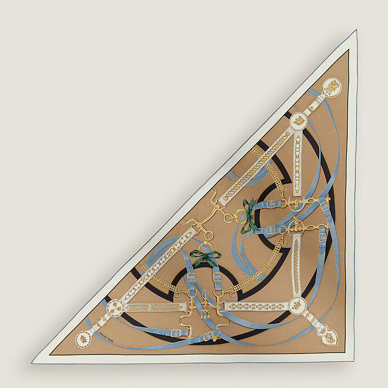 At the first light of dawn, when the ground is still steaming, the rider prepares his horse. An essential ritual, the morning ride is a peaceful and silent moment during which the animal walks at a slow pace, allowing the day to dawn. Next comes the warm-up, first at a trot and then at a gallop. Harmoniously wielding bridles, bits and curb chains, Henri d'Origny stages the harnessing necessary for this ride, recomposed here in the form of a triangle.