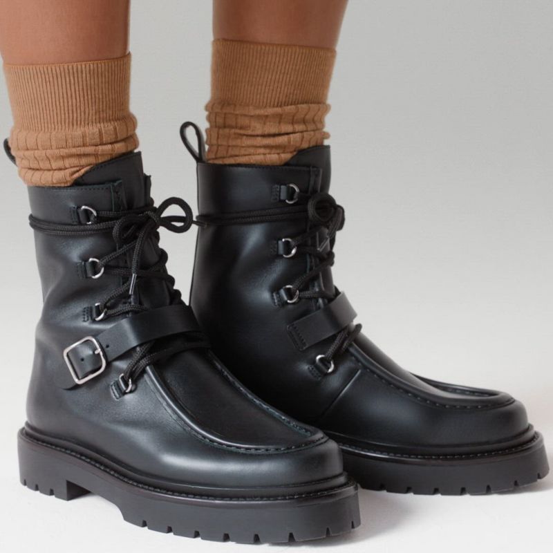 Biker boot in calfskin with notched rubber sole.