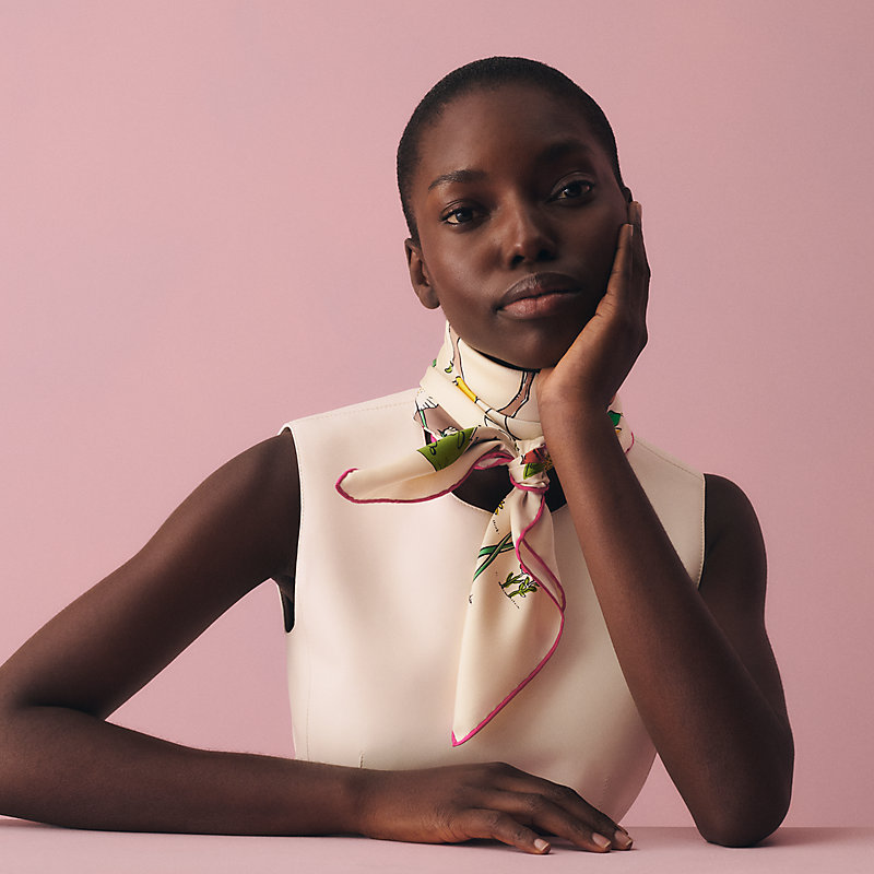 This iconic Hermès piece embodies the essence of powerful beauty and charismatic femininity. The 90 scarf symbolizes the boundless freedom of constantly renewed creation, unlimited emotion and the unique expression of a personal narrative waiting to be written.