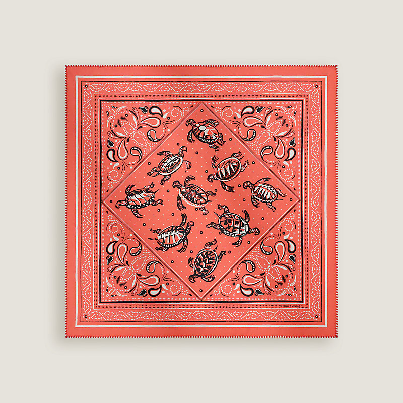 Turtles may always be at the back of the pack, but they have nonetheless made it onto this bandana. Swimming gracefully among its paisley patterns, they show off the beauty of their shells, designed by Jean-Louis Clerc.