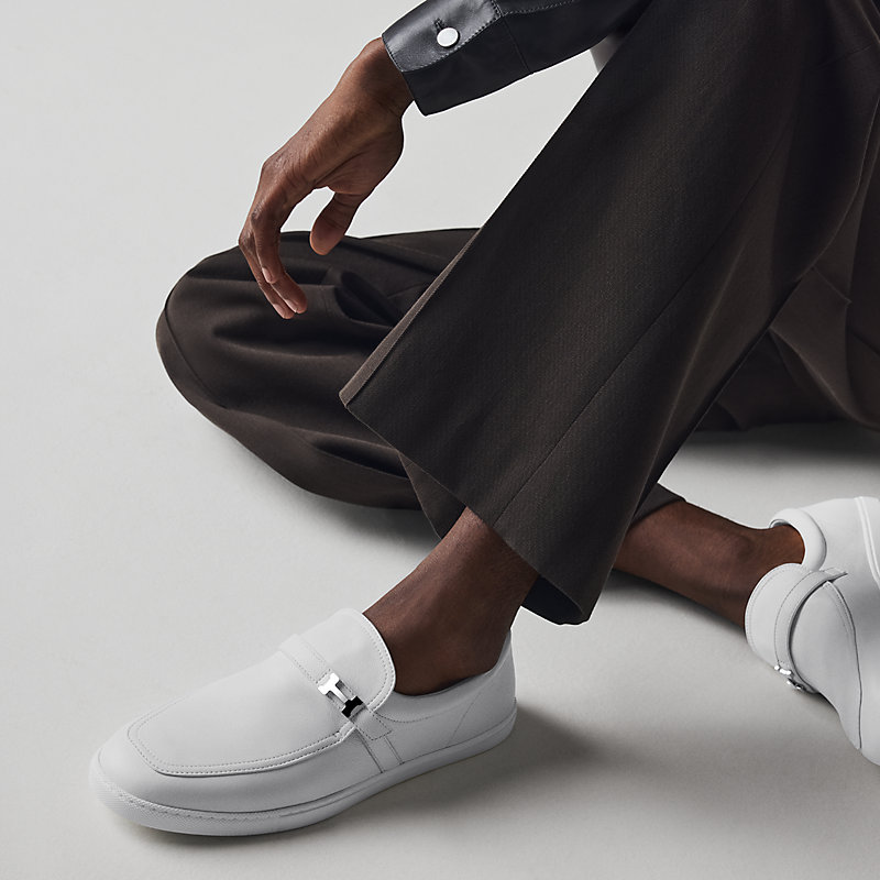 Loafer in sport goatskin with rubber sole and miniature Paris buckle.