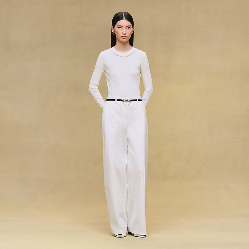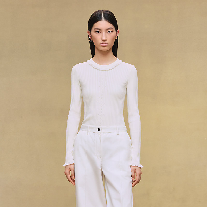 Long-sleeve sweater in silk and cotton with thin cable stitch (50% silk, 38% cotton, 9% polyamide, 3% elastane)