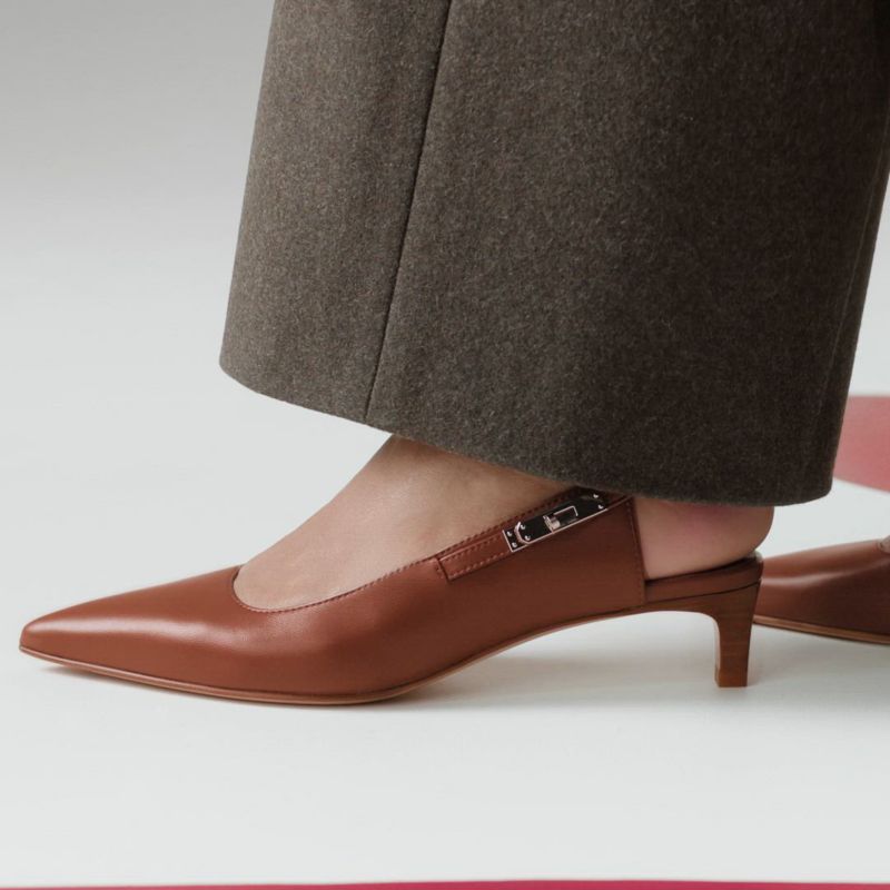 Slingback pump in Nappa leather with iconic Kelly buckle reinterpreted in a mini version.