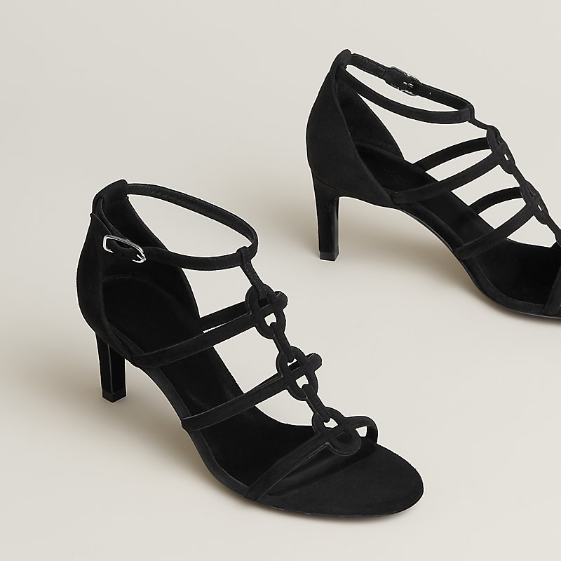 High heel sandal in suede goatskin with signature "Chaine d'Ancre" detail.