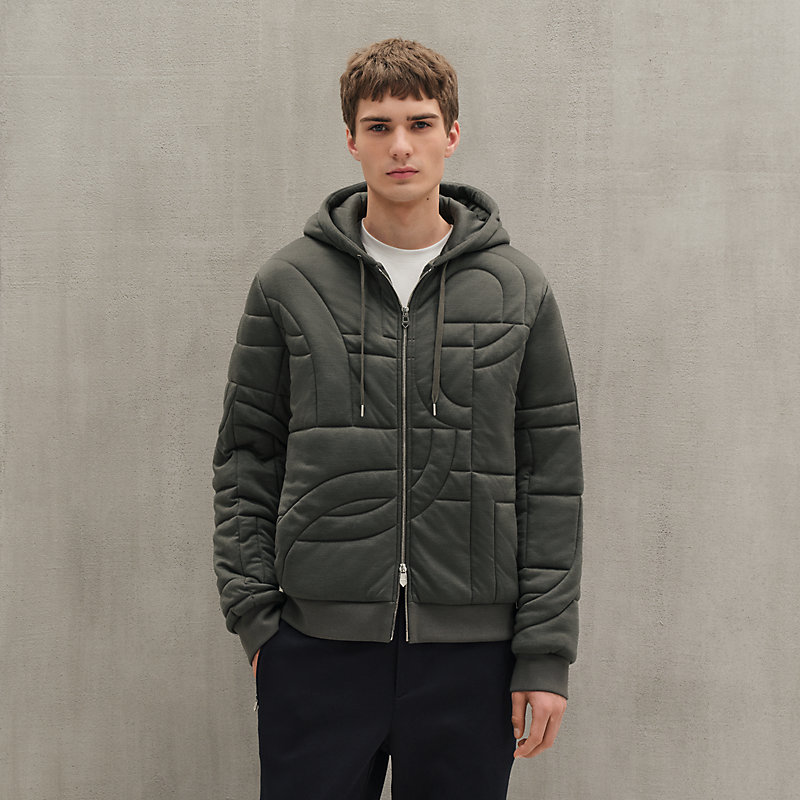 Quilted long-sleeve hooded sweater in virgin wool and silk with "Maillons 3D" detail (66% virgin wool, 34% silk)
