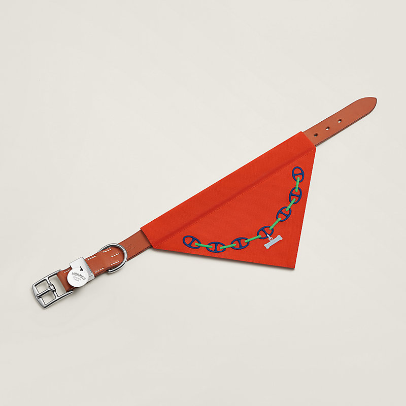 - Slip-on bandana designed to fit over a dog collar