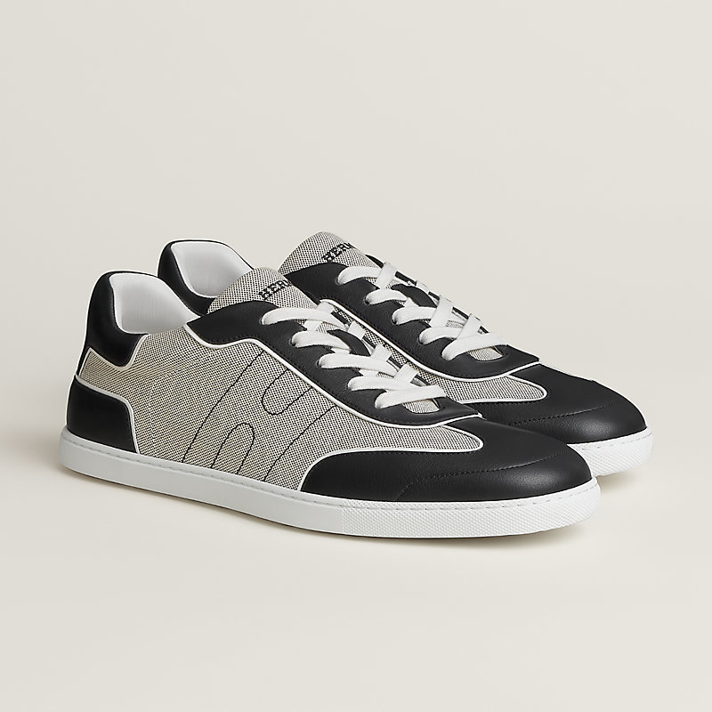 Sneaker in H canvas and calfskin with perforated "H en Biais" detail.