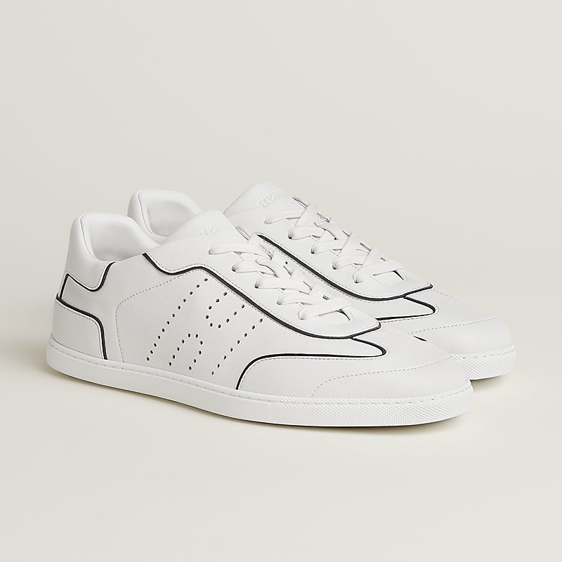 Sneaker in sport goatskin and calfskin with perforated "H en Biais" detail.