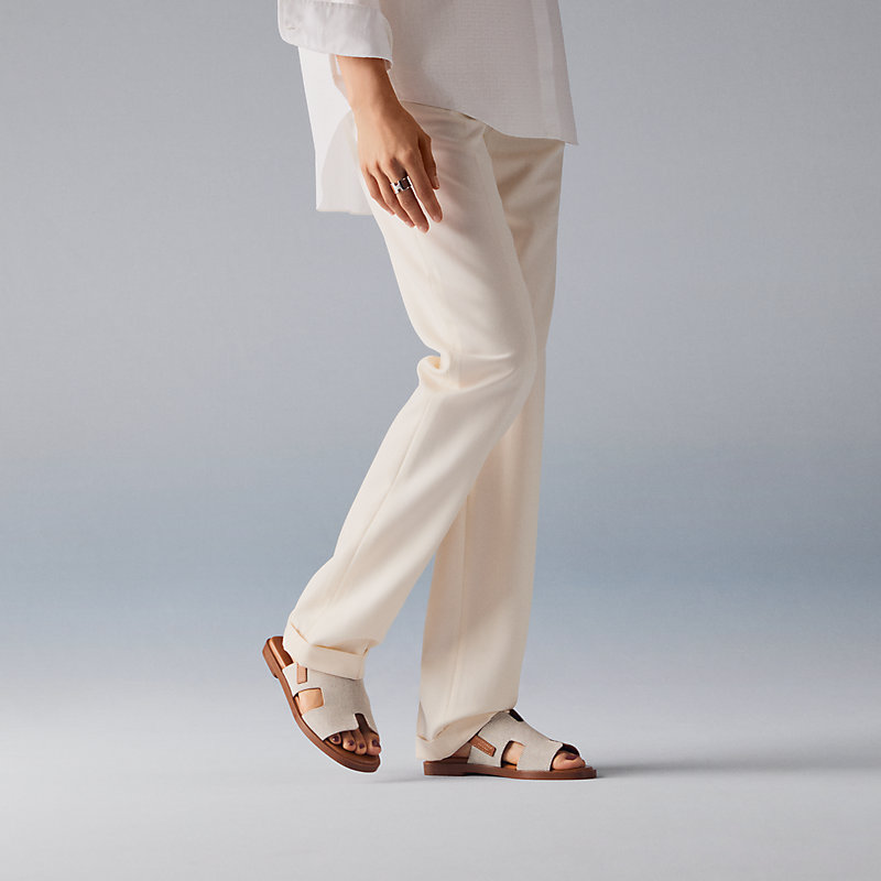 Sandal in H canvas and calfskin with iconic "H" cut-out detail and adjustable ankle strap inspired by the equestrian universe.