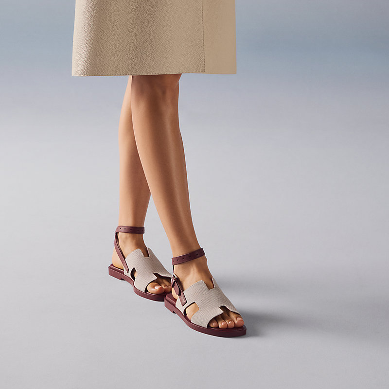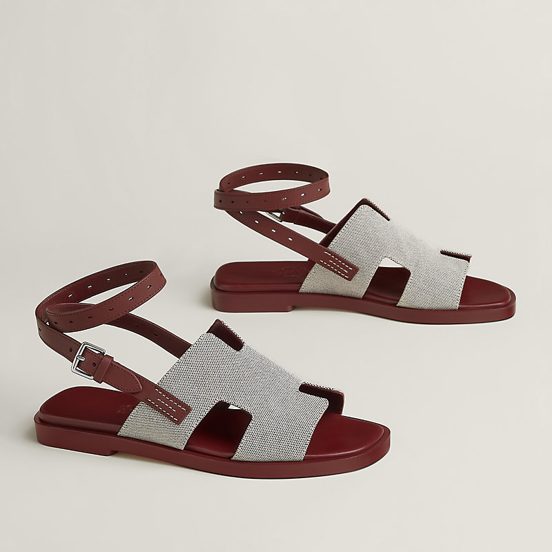 Sandal in H canvas and calfskin with iconic "H" cut-out detail and adjustable ankle strap inspired by the equestrian universe.