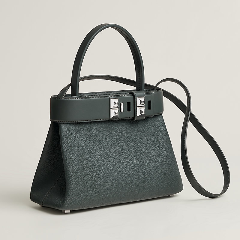 After adorning a dog collar-style belt in the 1920s, the stud has become the Medor bag's signature detail. Whether open or closed, the wide straps alternate between a grained leather texture on the body and a smooth leather on the belt. A new interpretation for Fall-Winter 2025, the four studs have been given a mirror-like finish for an extra sparkle thanks to meticulous goldsmithing expertise. Whether carried by hand or worn over the shoulder, the two styles allow you to vary your look as needed throughout the day.