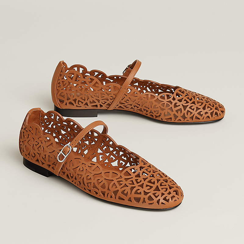 Ballet flat in calfskin with perforations inspired by the "Chaine d'Ancre" motif.