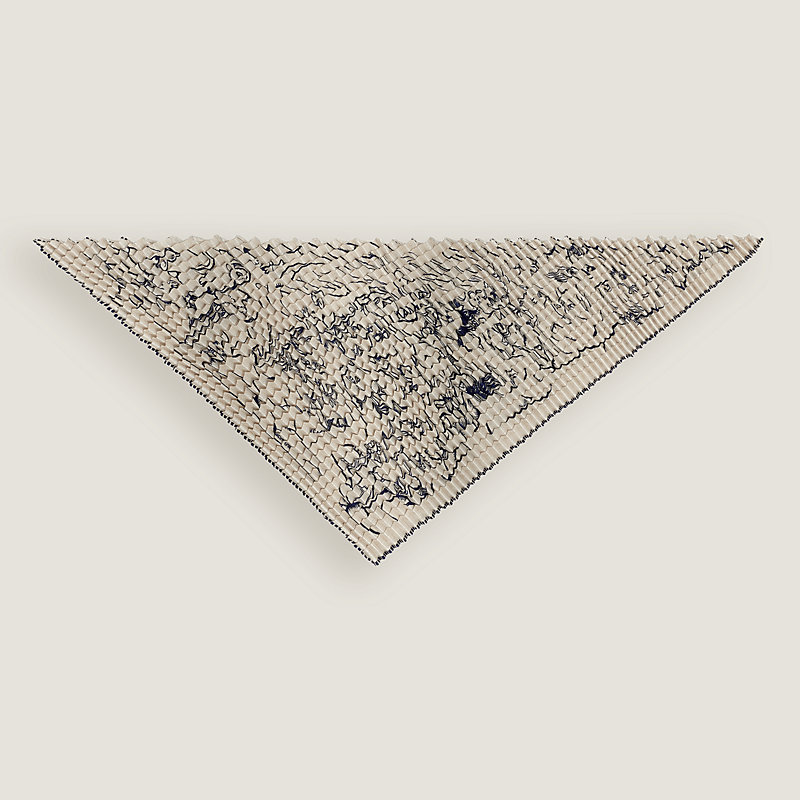 Made of cashmere and silk, this triangle scarf is printed and hand-pleated twice by our artisans, for a playful casual look.