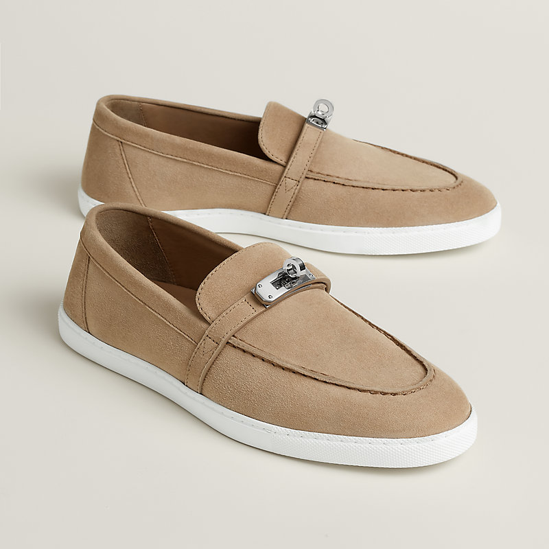 Loafer in suede goatskin with rubber sole and iconic Kelly buckle.