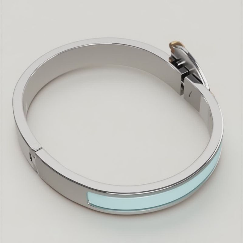 To open and close your Hermès bracelet, follow these three steps. 1. Carefully slide it over your wrist. 2. Push both ends together to close. 3. Rotate the "H" of the clasp until straight. And Click!