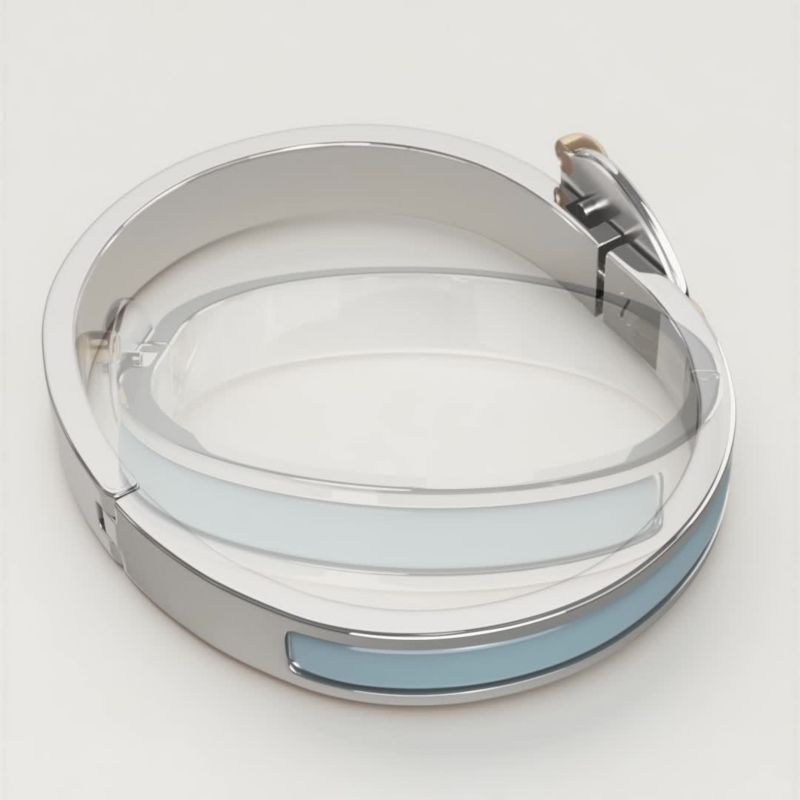 To open and close your Hermès bracelet, follow these three steps. 1. Carefully slide it over your wrist. 2. Push both ends together to close. 3. Rotate the "H" of the clasp until straight. And Click!