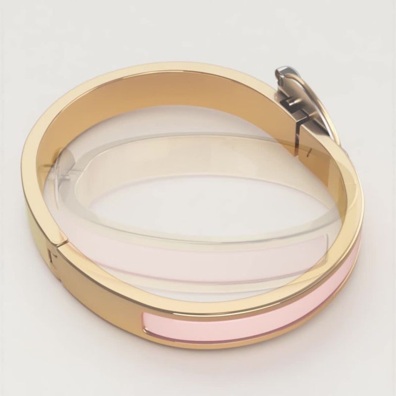 To open and close your Hermès bracelet, follow these three steps. 1. Carefully slide it over your wrist. 2. Push both ends together to close. 3. Rotate the "H" of the clasp until straight. And Click!