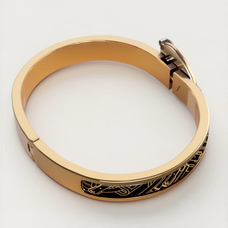 To open and close your Hermès bracelet, follow these three steps. 1. Carefully slide it over your wrist. 2. Push both ends together to close. 3. Rotate the "H" of the clasp until straight. And Click!
