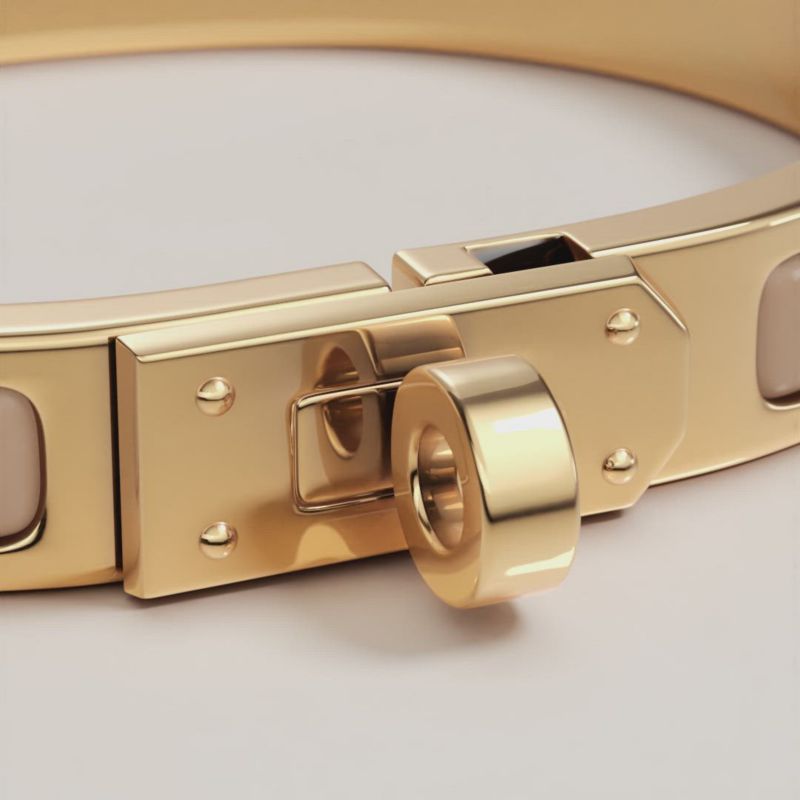 This bracelet opens and closes thanks to an ingenious toggle clasp which reveals the iconic Kelly signature.