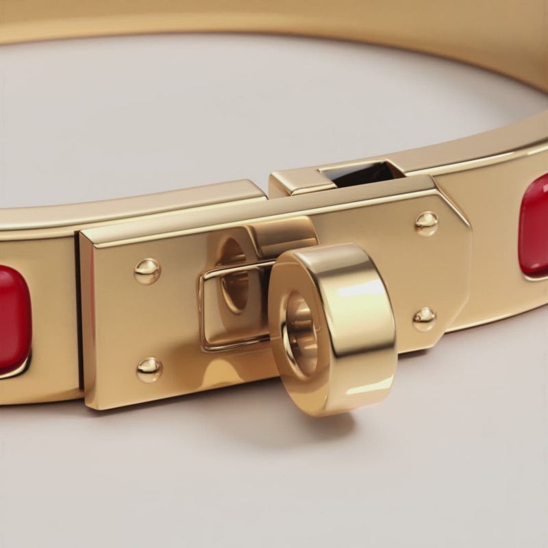 This bracelet opens and closes thanks to an ingenious toggle clasp which reveals the iconic Kelly signature.