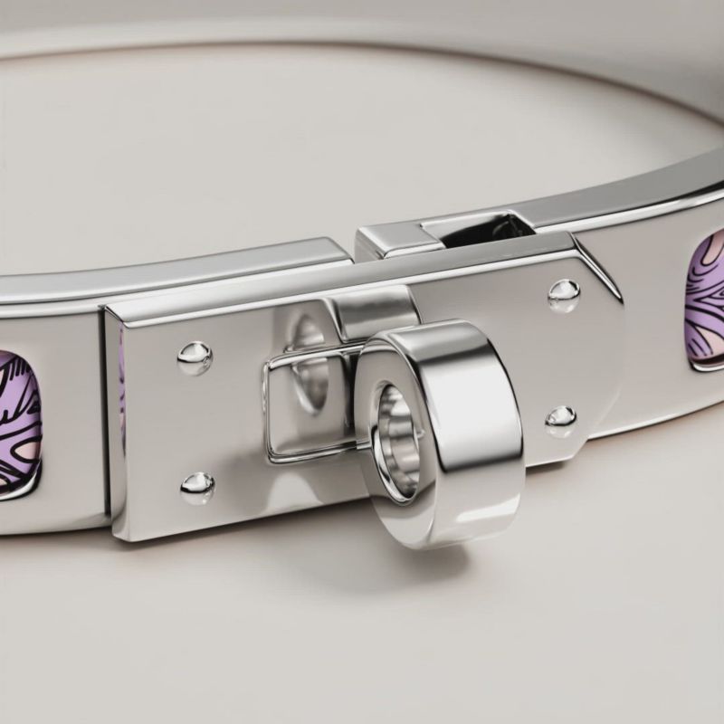 This bracelet opens and closes thanks to an ingenious toggle clasp which reveals the iconic Kelly signature.