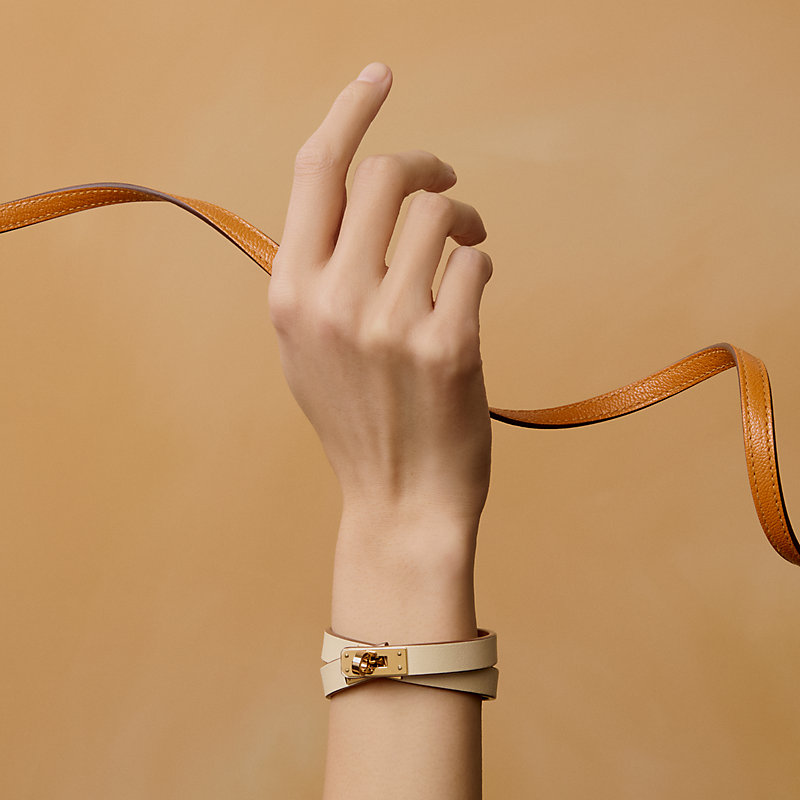 Double tour bracelet in Swift calfskin with mini Kelly closure.