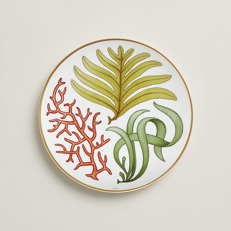 Sun-brightened corals and seaweed shimmering with cool water compose the oceanic garden of the new Natures Marines tableware collection.