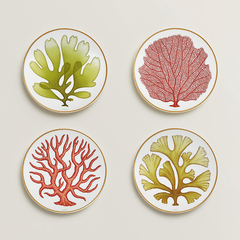 Sun-brightened corals and seaweed shimmering with cool water compose the oceanic garden of the new Natures Marines tableware collection.