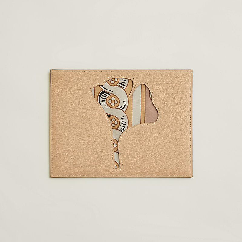 Passport holder in goatskin and printed silk twill (100% silk).
