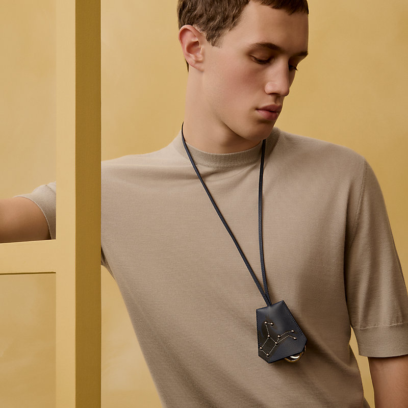 The Clochette long necklace, which appeared in our collections in 1998, revisits the emblematic bell of our bags. Two split rings are concealed, making it a functional accessory. This season, it is adorned with a sparkling twilight sky, unveiling a Pegasus constellation.