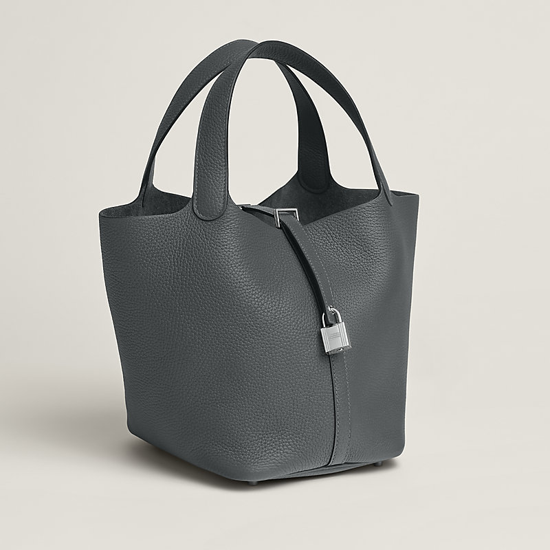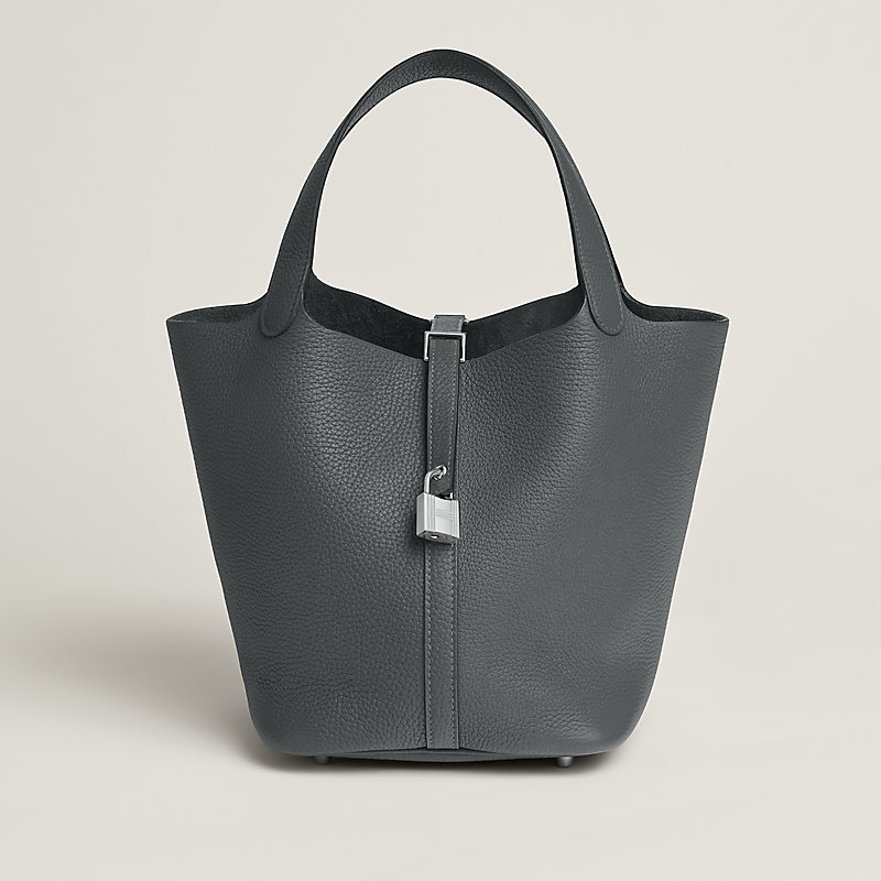 This timeless and minimalist bindle is inspired by horse feeders and is equipped with a discreet padlock. It takes its name from an old French term for the measure of oats given to a horse. The Picotin is the perfect equestrian escort, available in unlined leather that showcases the material; or in canvas and leather with outside pockets for a light, casual and functional wear.