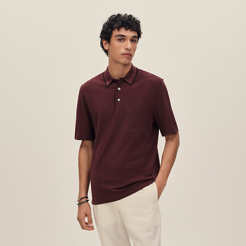 - Rib-trim buttoned polo neck with contrasting "Piqures sellier" detail