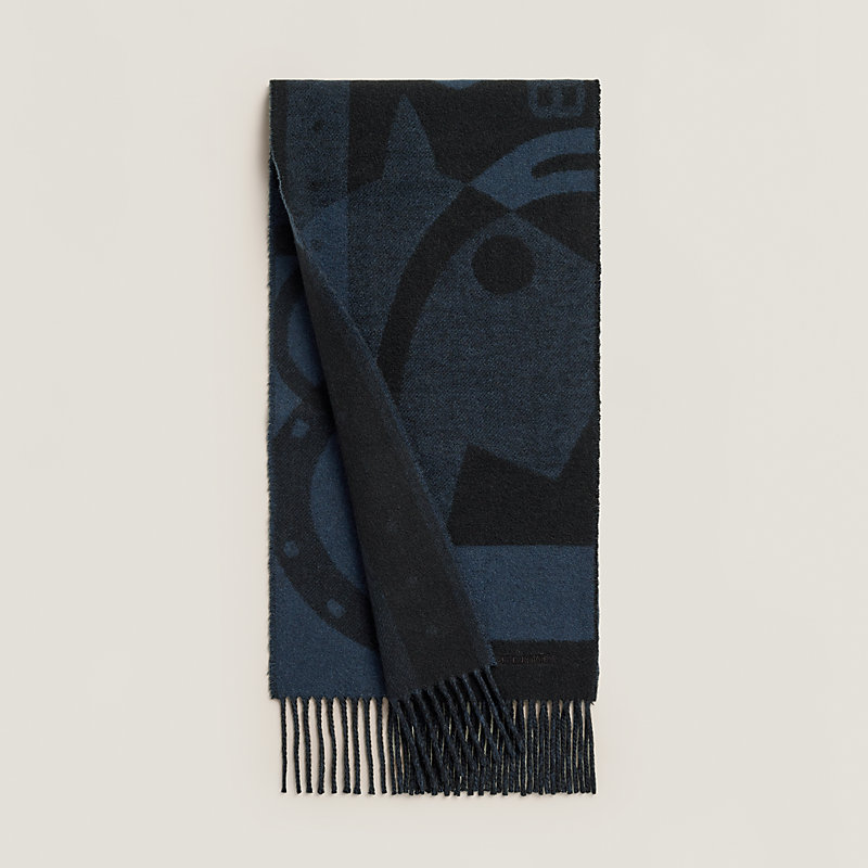 Designed in a jacquard weave, Cyrille Diatkine's Ready Steady Go design gives a graphic look to this bicolor cashmere scarf.