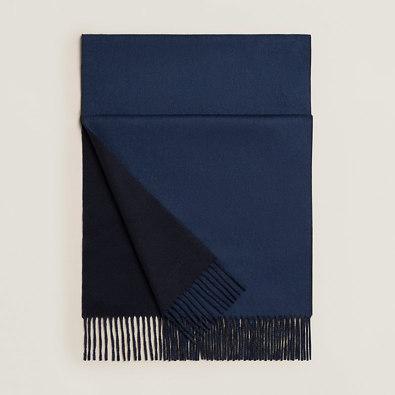 This scarf in plain reversible cashmere is signed with "Hermès" embroidery.