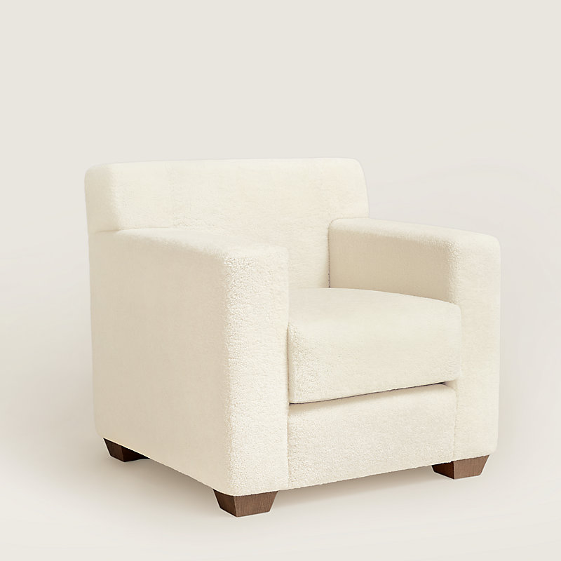 Club armchair in natural shearling