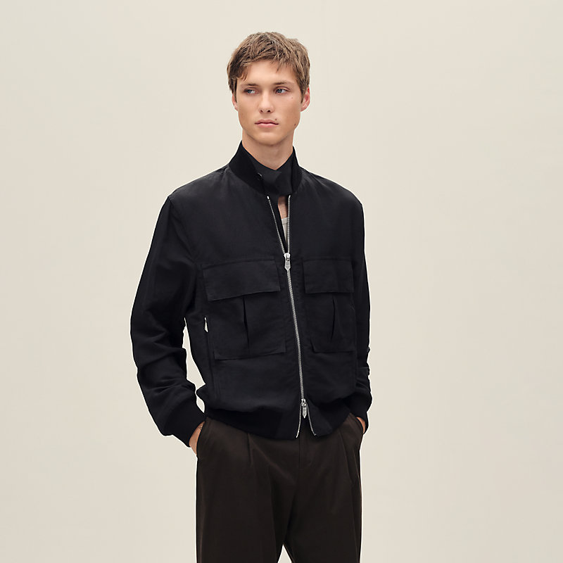 Zipped rib-trim jacket in "Techno Papier" (57% paper, 43% viscose)