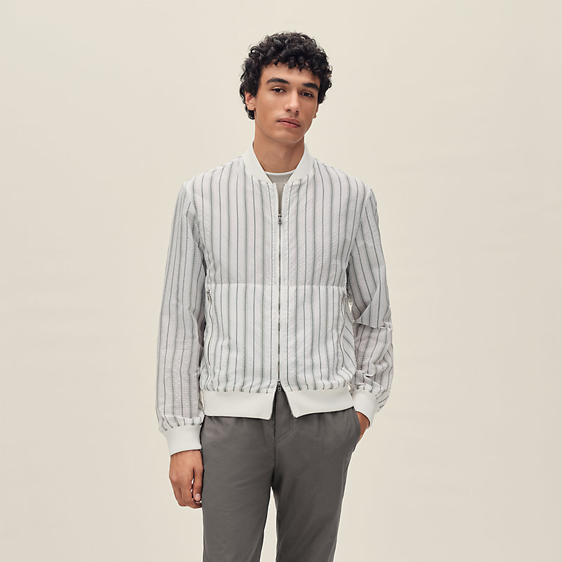 Zipped rib-trim jacket in striped water-repellent ripstop (100% polyamide)